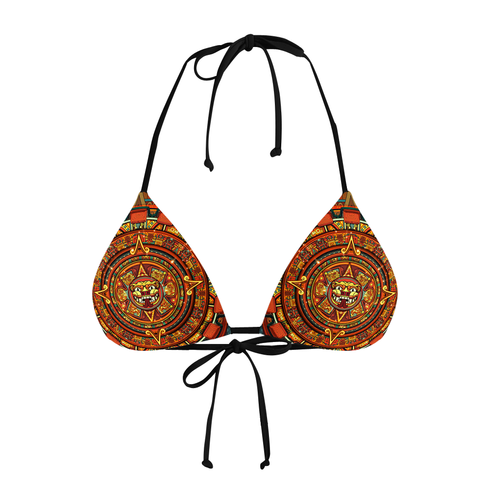 Biquíni cortininha com alças ajustáveis em tecido leve e confortável. Estampa exclusiva MAYA 2025 em cores vibrantes que realçam o visual com autenticidade.