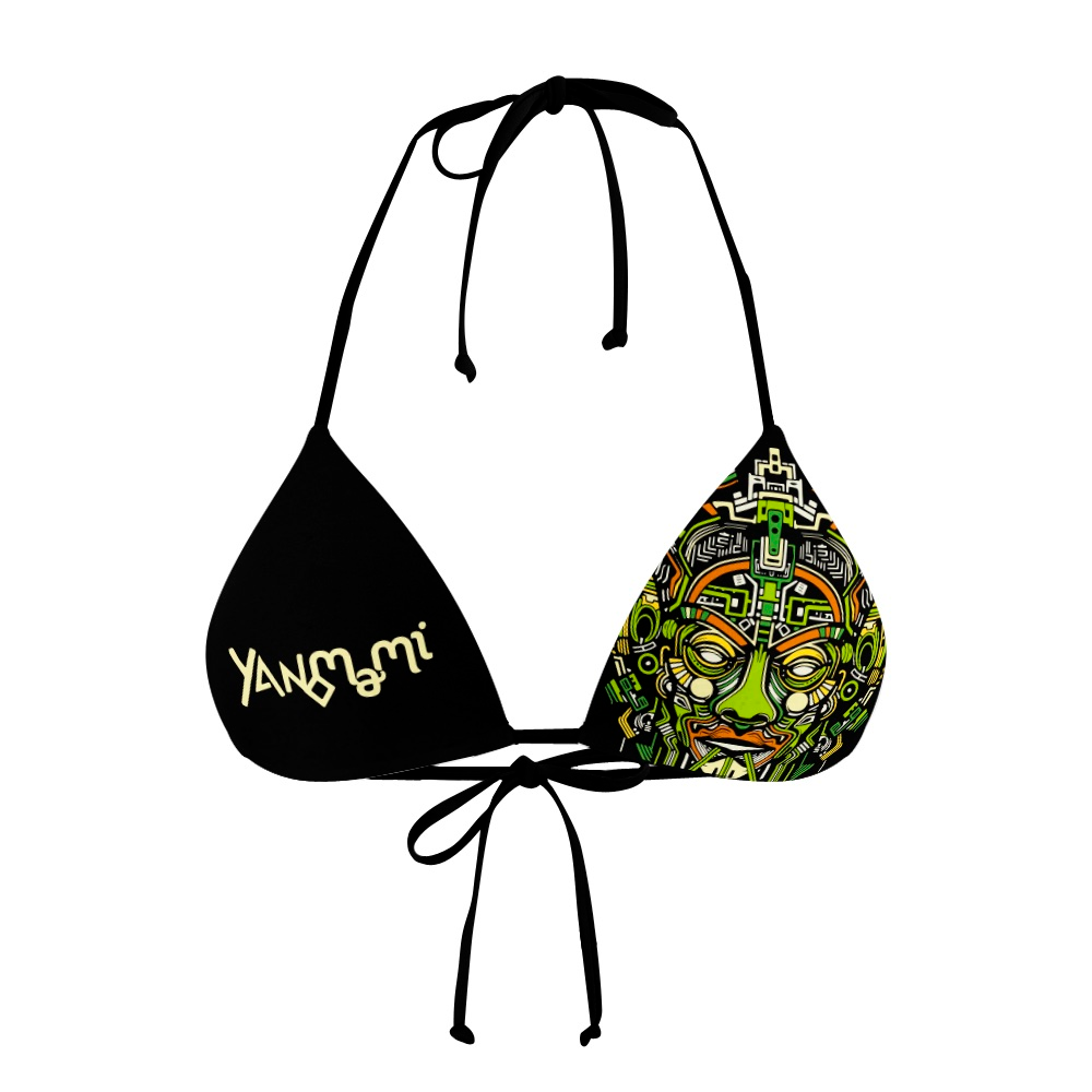 Biquíni cortininha com alças ajustáveis em tecido leve e confortável. Estampa exclusiva Yanomami 2025 em cores vibrantes que realçam o visual com autenticidade.