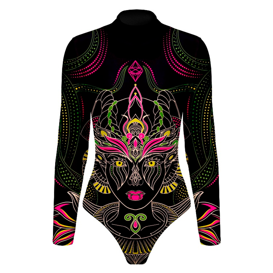 Body com modelagem confortável que valoriza as curvas. Perfeito para eventos, praia, piscina ou looks urbanos cheios de estilo. A estampa exclusiva Flor da Vida 2023 garante autenticidade ao visual.