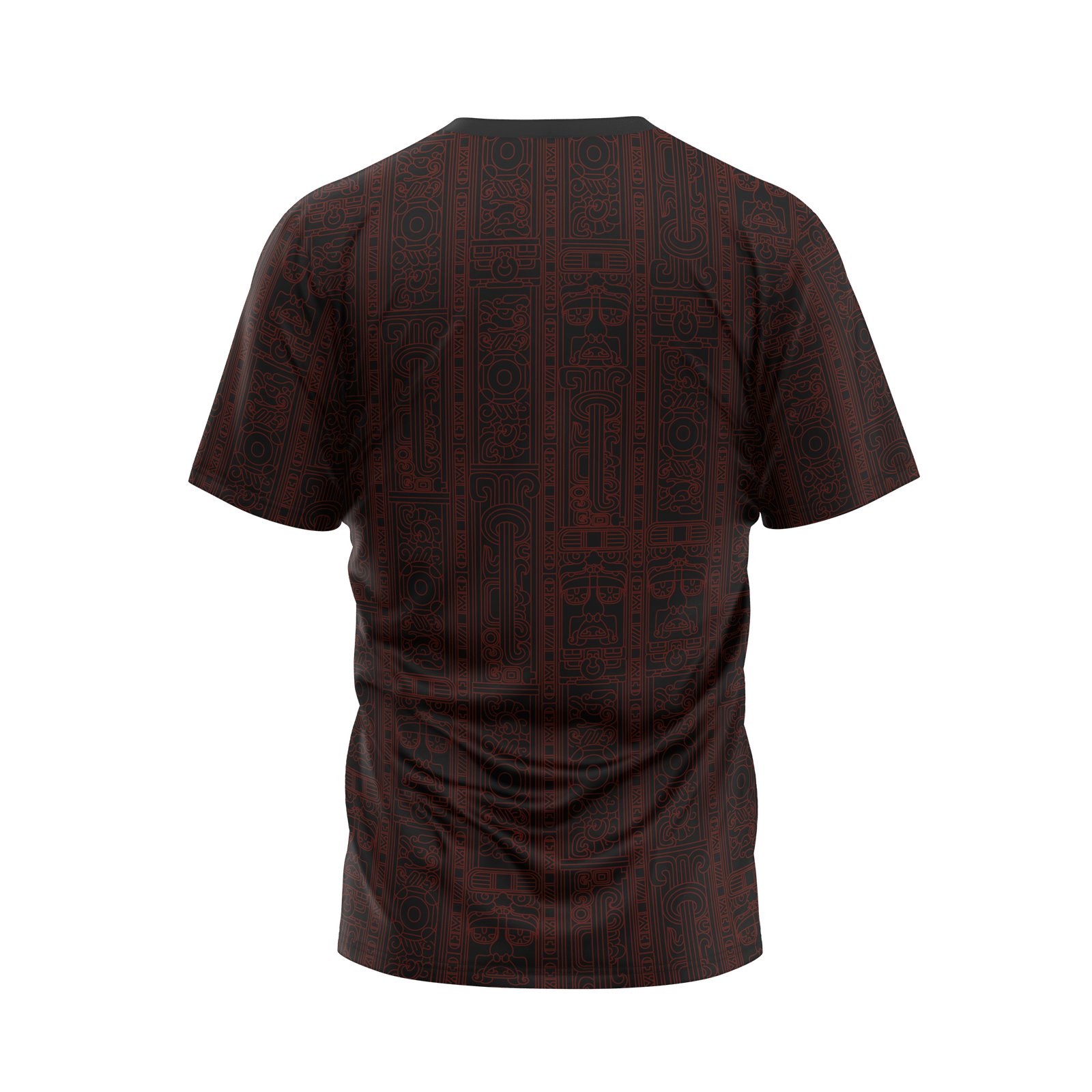 Camiseta estampada, inspirada na cultura Maia e símbolos marcantes.