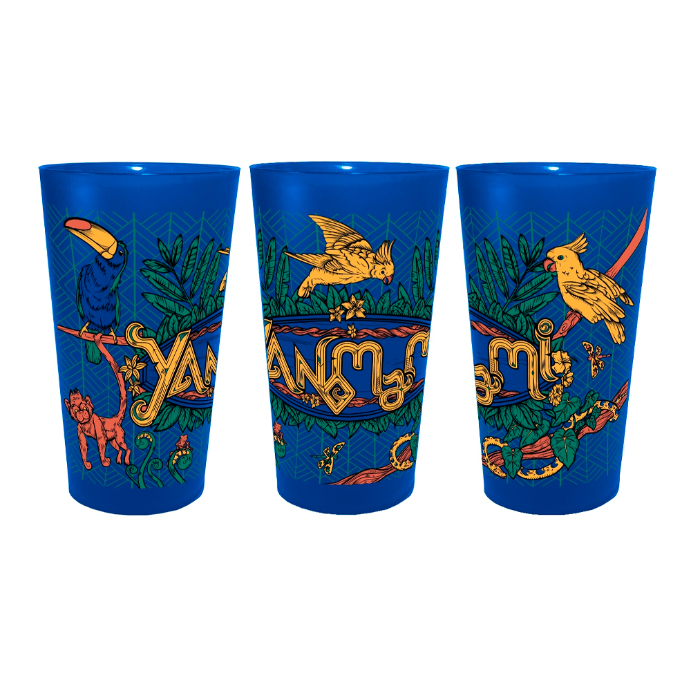 Copo exclusivo Yanomami 2024, 600ml, em plástico resistente, reutilizável e ecológico. Design com cores vibrantes que destacam o espírito do evento.