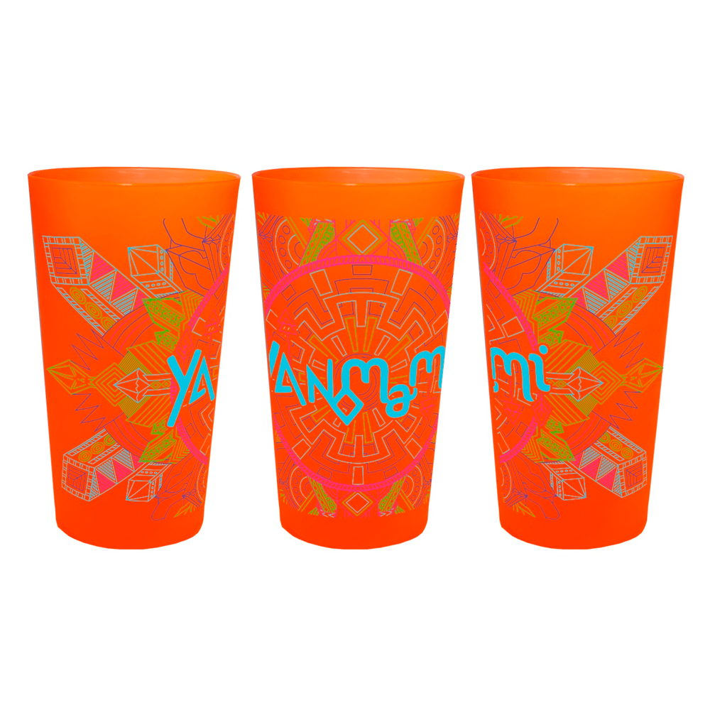 Copo exclusivo Yanomami 2022, 600ml, em plástico resistente, reutilizável e ecológico. Design com cores vibrantes que destacam o espírito do evento.