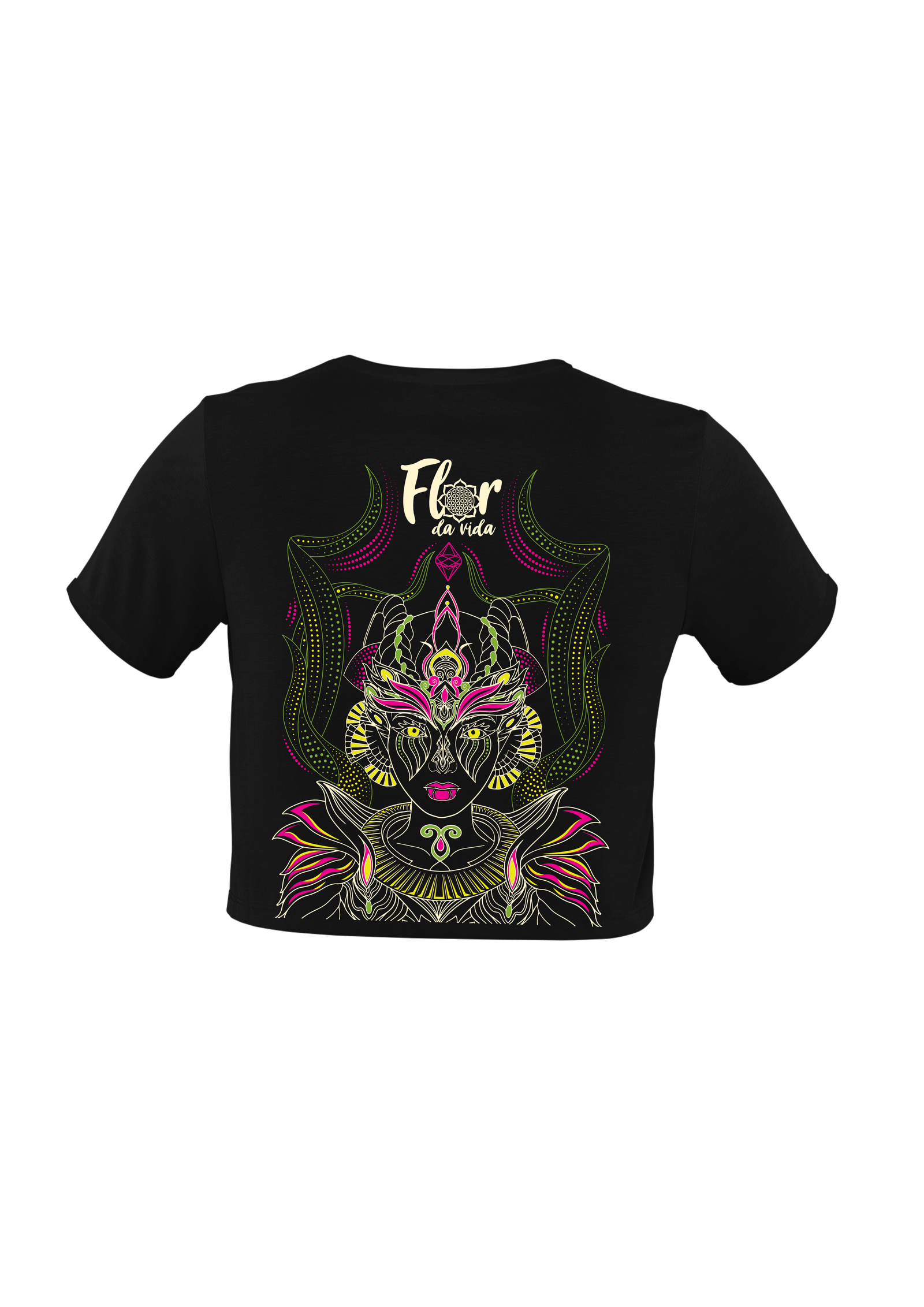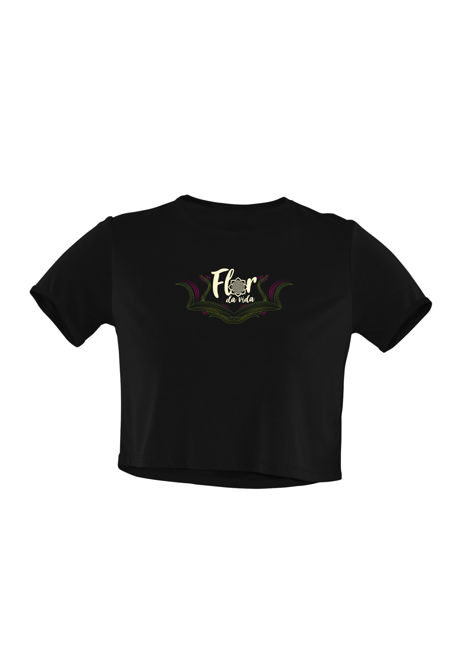 Cropped de Manga curta com Logo Bege, Rosa e Verde – Flor da Vida 2023