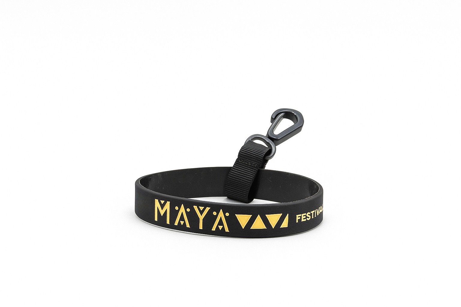Perfeito para compor kits com copos e cordões. O produto é formado por uma pulseira de borra ha costurada a um mini mosquetão de nylon, utilizado para segurar o copo e fixá-lo no cordão personalizado.