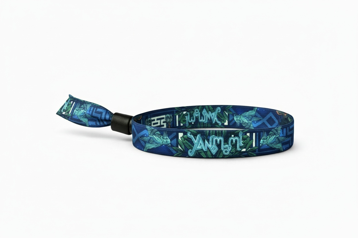 Pulseira oficial da Yanomami 2025. Produzida em poliéster com trava Plastilock e impressão digital em alta definição. Item exclusivo para colecionadores e para quem deseja guardar a memória do evento.